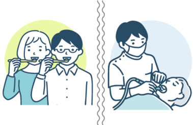 例:毎日の歯みがき、デンタルフロスや歯間ブラシでの清掃、歯ぐきの腫れや出血の自己チェックなど。