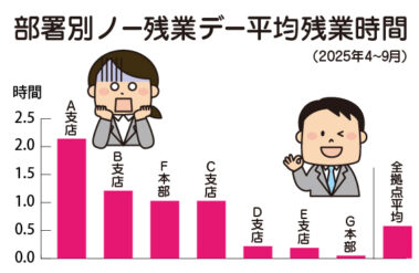 今年の取り組み結果を見ると、定時の18時の1時間以上、場合によっては3~4時間後に退社している部署が毎週あります。